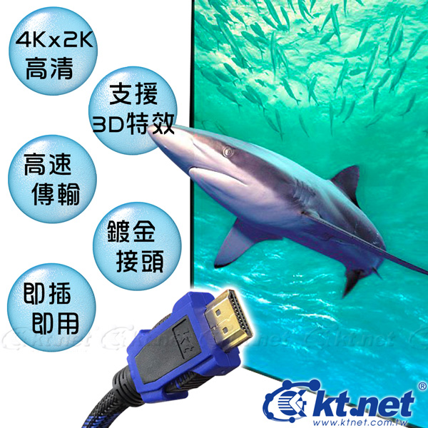 KTNET-HDMI公對公 4Kx2K 高解析影音訊號線2.0版-3米