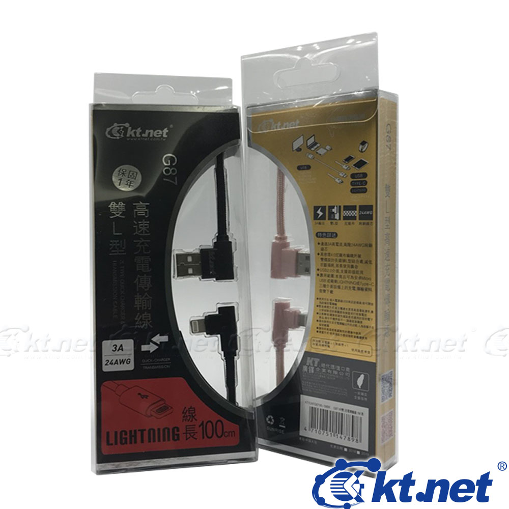 KTNET G87 雙L型高速充電傳輸線 100CM 黑