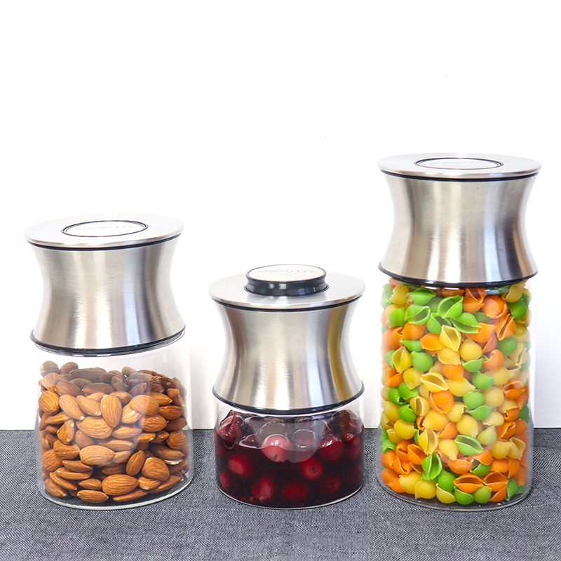 ◆商品名稱:【安酷生活】圓形不鏽鋼玻璃保鮮密封罐-3件禮盒組