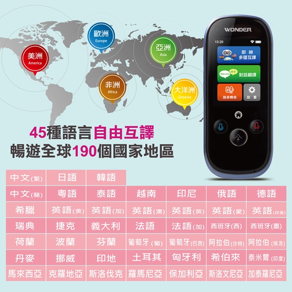 ◆四十五種語言自由互譯:中文(繁、簡、粵)/英(美國、英國、澳大利亞、加拿大、印度、愛爾蘭)