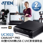 ATEN HDMI轉UVC視訊影像擷取器含USB-C充電功能 (UC3021)