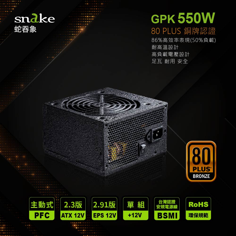 蛇吞象80Plus銅牌認證 550W電源供應器