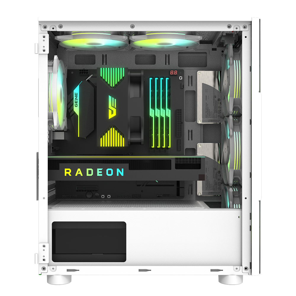 - 掀門式鋼化玻璃設計,讓機箱內部裝置一覽無遺