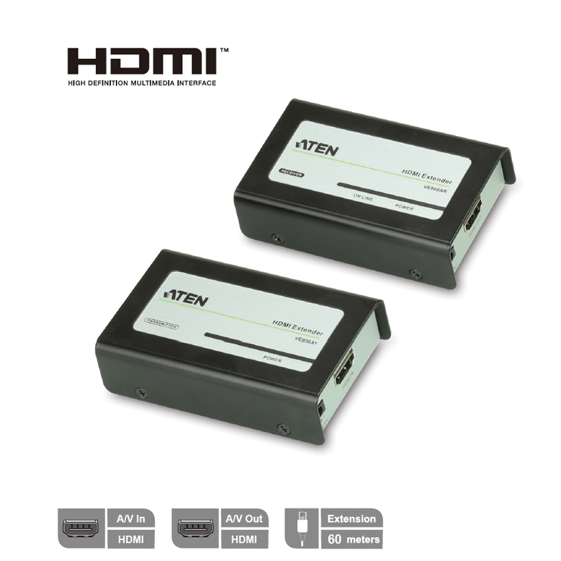 VE800A HDMI訊號延長器使用一條Cat 5e線材從來源端裝置延伸HDMI顯示裝置高達60公尺。採用新技術將A/V訊號透過一條Cat 5e線材傳送、DDC連接埠可連接另一條Cat 5e線材以使用ATEN的EDID 技術進行影音傳輸。VE800A支援HDMI功能像是3D和色深等能提供您極佳的視學享受。