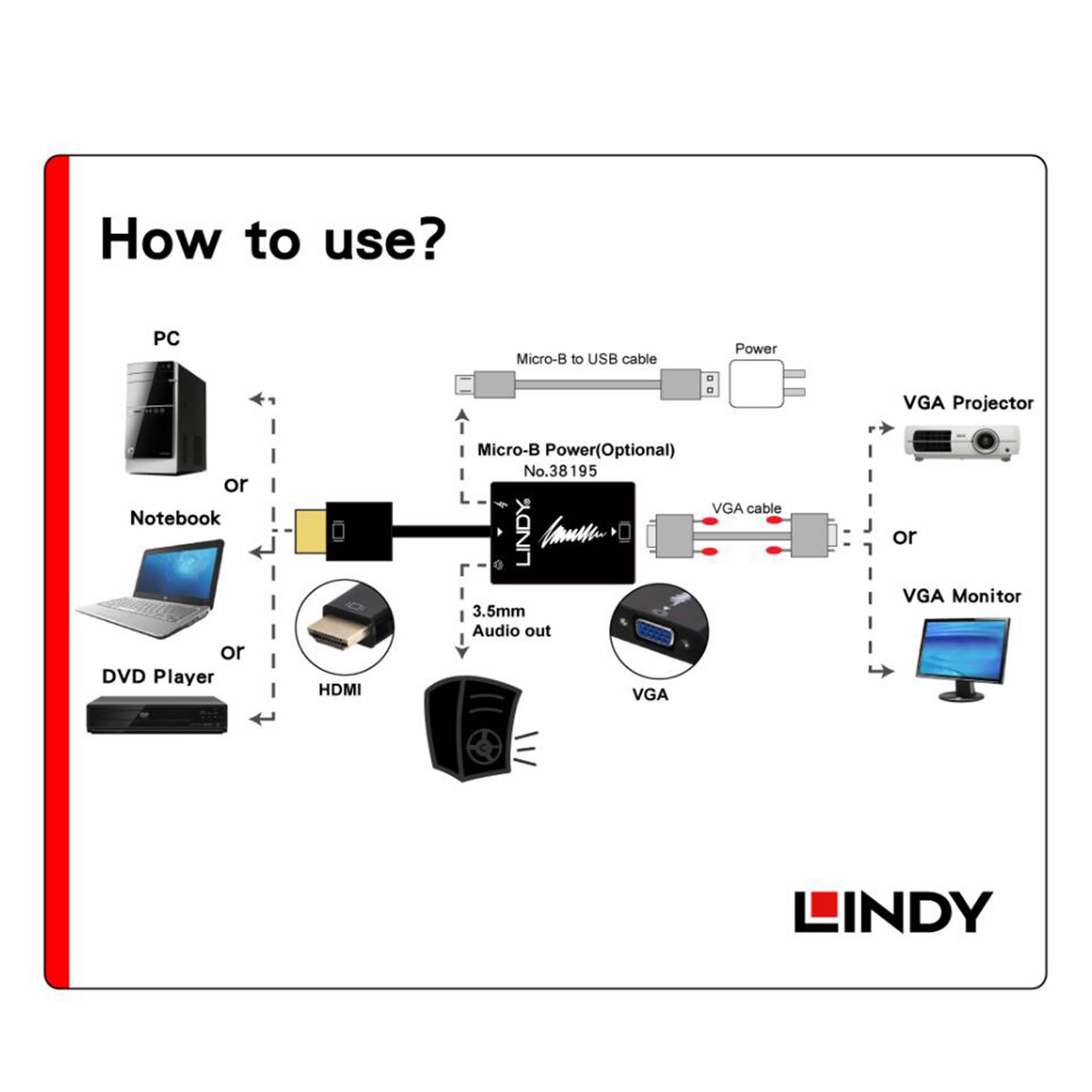 LINDY   HDMI TO VGA + AUDIO 轉接器 38195A