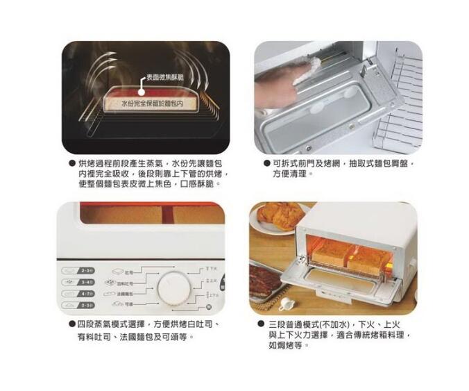 .四段蒸氣模式選擇,方便烘烤白吐司、有料吐司、法國麵包及可頌等。