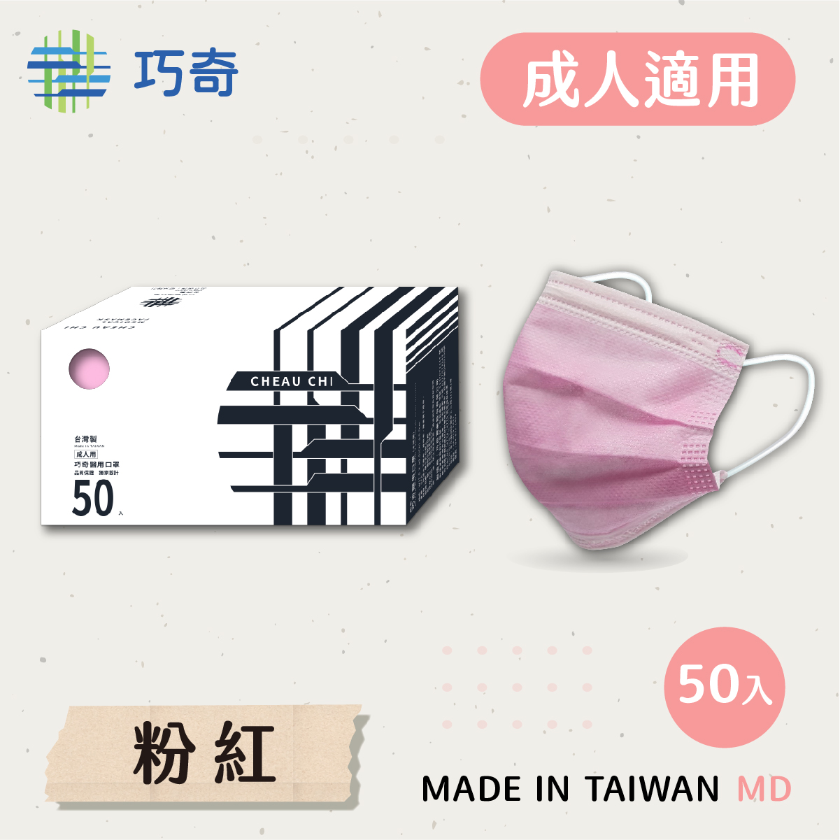 巧奇 AD50-PKW成人醫用口罩50入 素粉 台灣製造